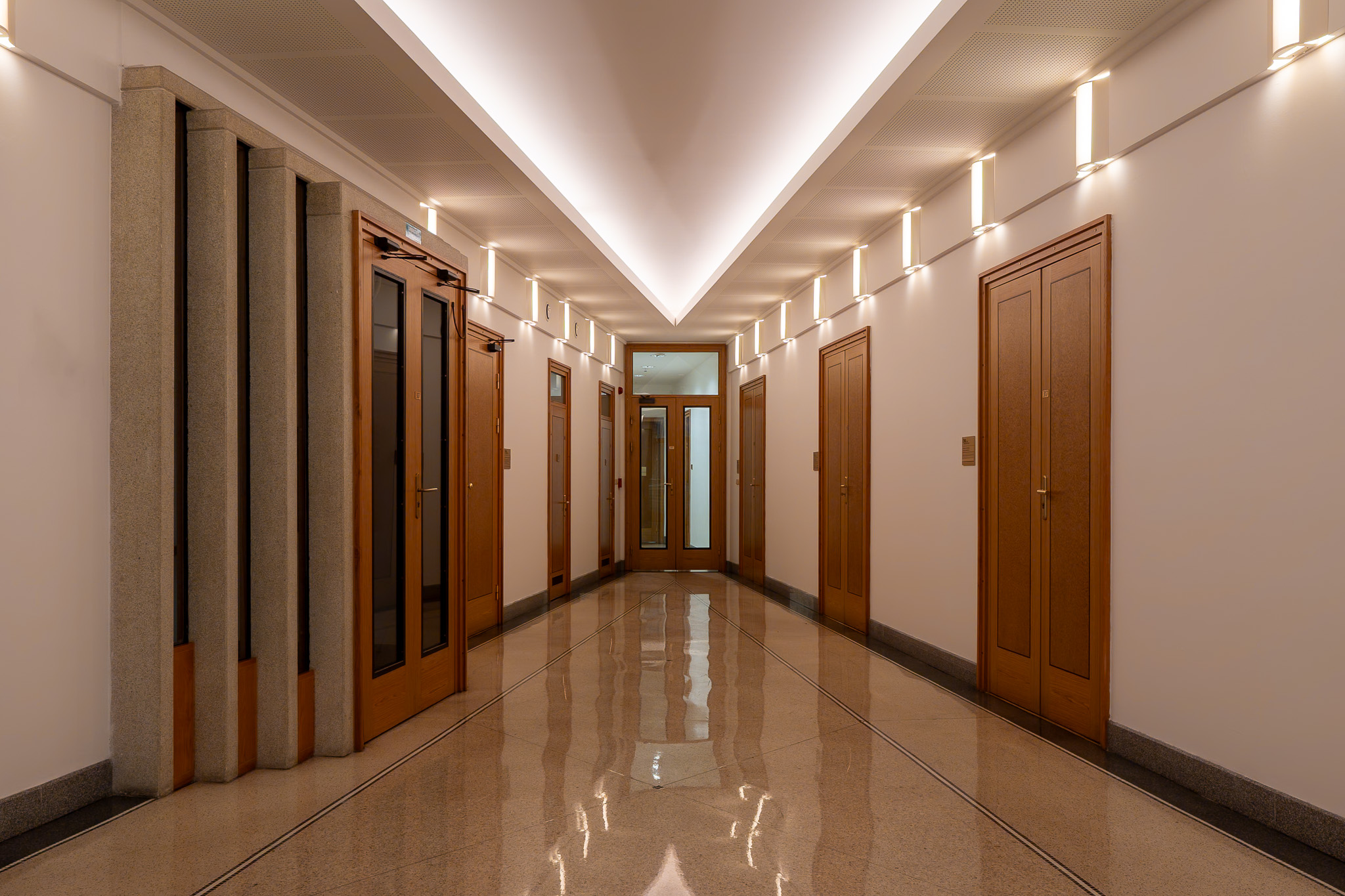 Pro pobočku České národní banky v Brně jsme realizovali kompletní výměnu interiérových svítidel za moderní LED osvětlení, které přináší vyšší efektivitu, nižší provozní náklady a kvalitnější světelný komfort pro zaměstnance i návštěvníky. Projekt probíhal ve specifickém režimu s ohledem na provozní bezpečnost a vysoké nároky na standardy budovy, včetně časové koordinace prací, aby nedošlo k narušení provozu instituce. Nová svítidla byla navržena tak, aby zachovala původní charakter prostoru, ale zároveň splňovala aktuální technické i energetické normy.