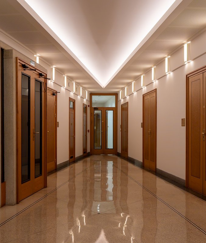 Použili jsme kvalitní LED svítidla s vysokým indexem podání barev (CRI) a dlouhou životností, která přinášejí rovnoměrné a neoslňující světlo ve všech částech objektu – od kanceláří až po společné prostory. Díky této modernizaci získala budova energeticky úspornější provoz, nižší náklady na údržbu a vyšší vizuální komfort, což odpovídá současným trendům v oblasti osvětlování administrativních a veřejných budov.